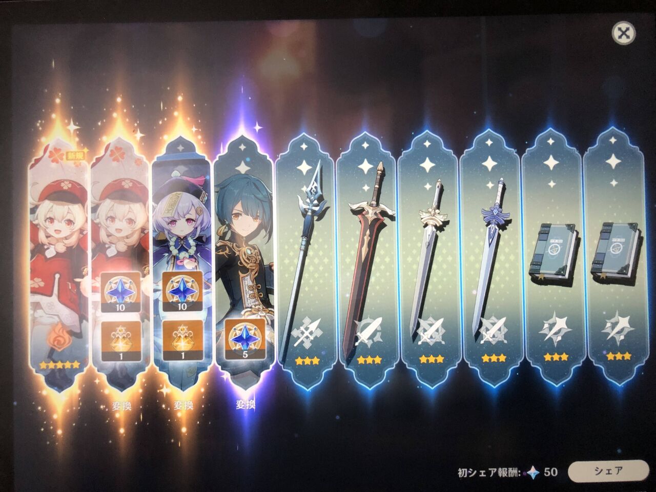 こちらの祈願ではキャラクター「クレー(炎)」「行秋(水)」「ノエル(岩)」「スクロース(風)」の出現確率がアップします。